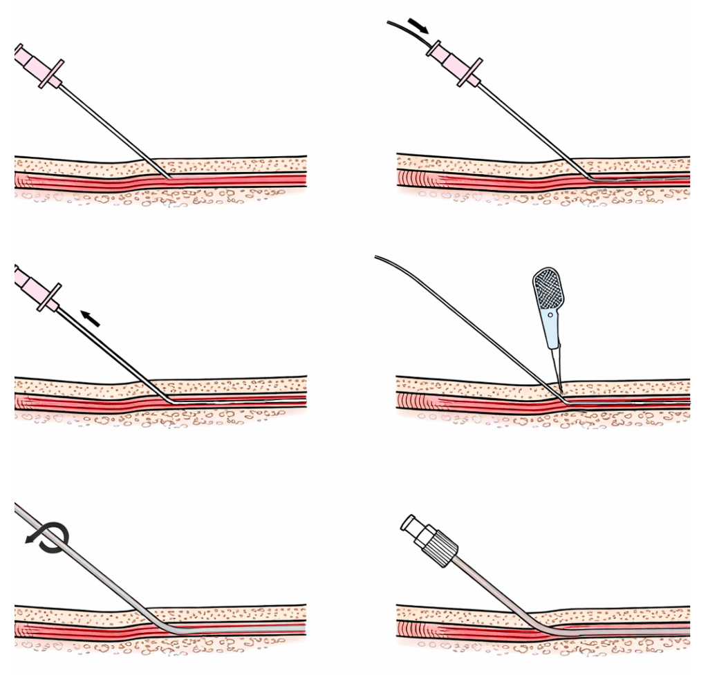 A Técnica de Seldinger baseia-se em uma sequência controlada de etapas que garantem acesso seguro ao interior de vasos sanguíneos ou cavidades anatômicas.